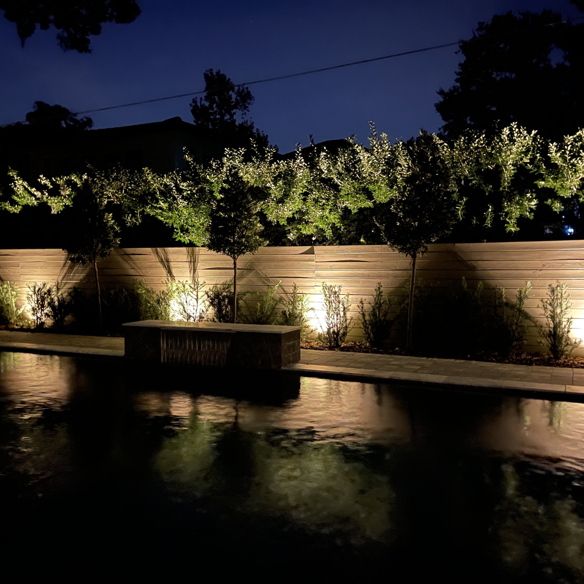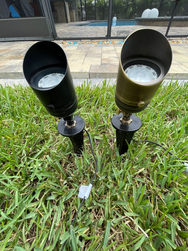 Low voltage landscape lighting is the most common option for residential outdoor lighting work with 12V landscape lighting, which is easier to install, less expensive and safer than line voltage. Low voltage landscape lighting lowers the risk of shock and the cable can be buried in shallow trenches, generally without conduit. Additionally, there are far more choices of low voltage landscape lighting fixtures, bulbs, wattages and designs.